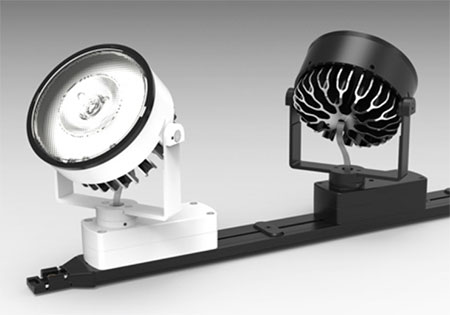 The spotlight range available for the RAD Track 4 include the SLE 30 Spotlight with Soraa light engine and the D100 Spotlight with 10 Watt Citizen COB. A wide variety of optics and anti-glare accessories including honeycomb louvres can be incorporated in this range.